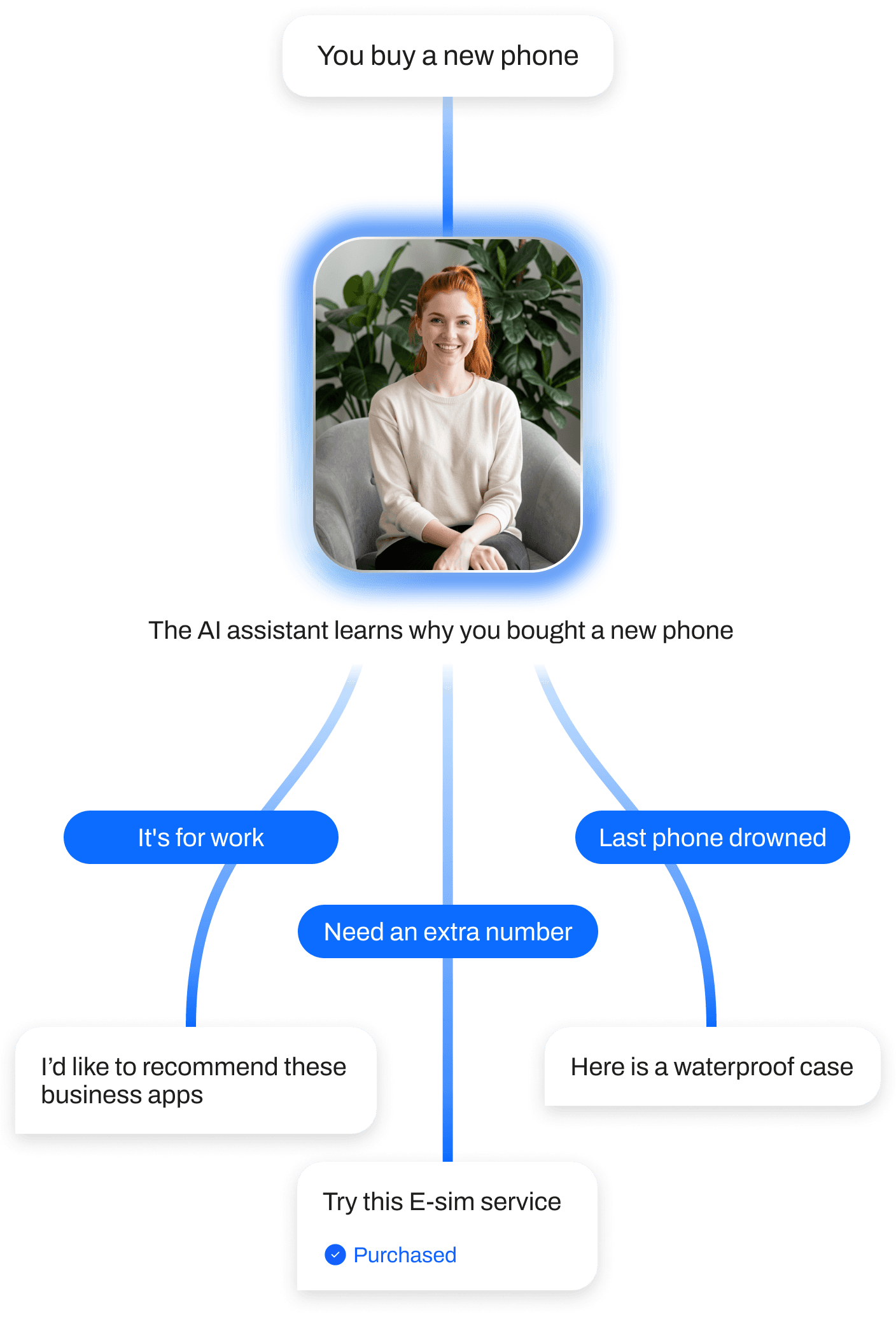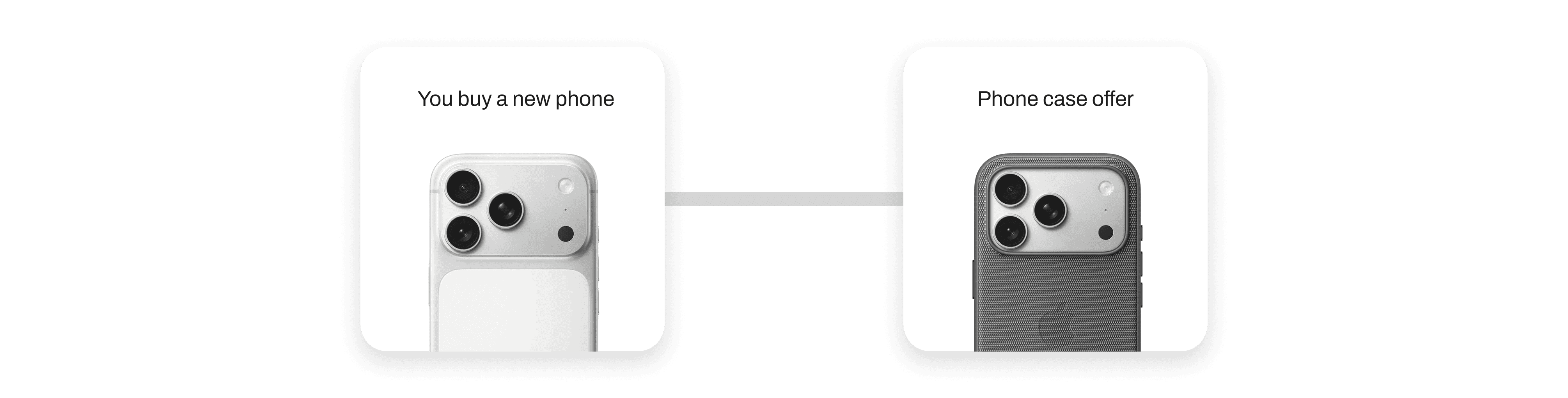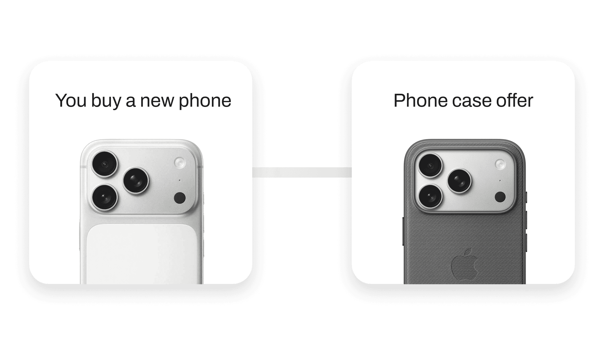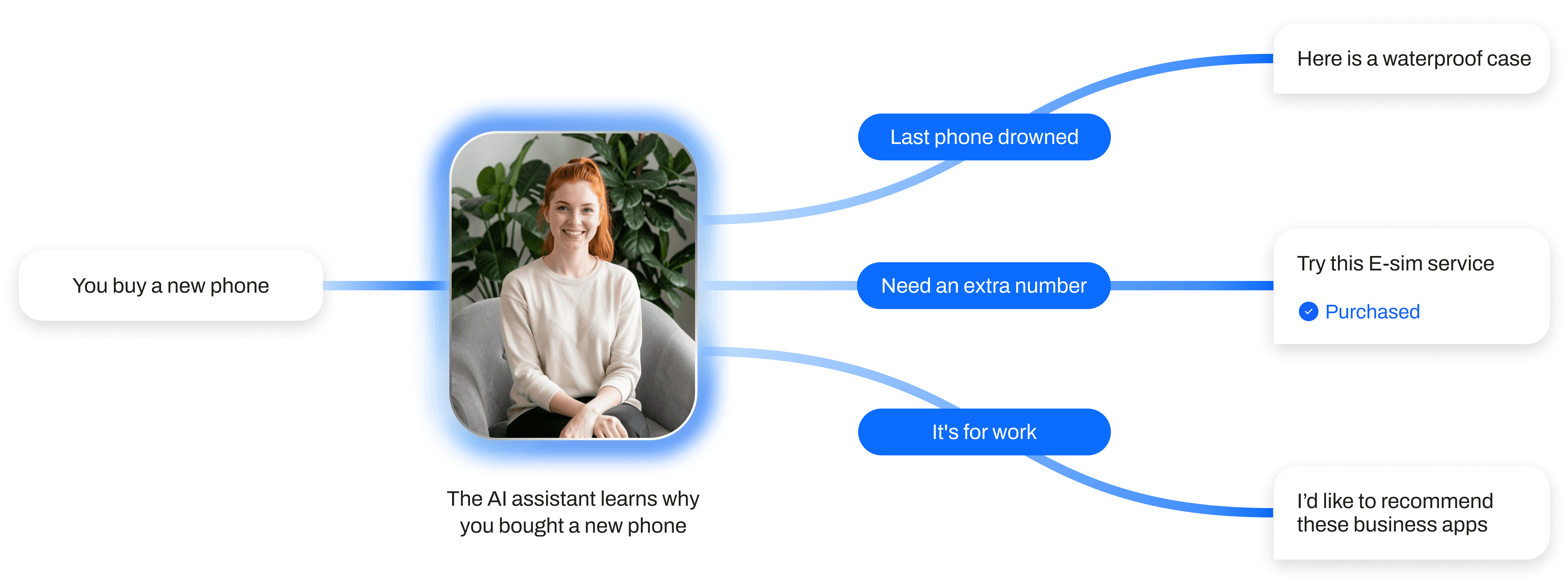 Customer buys a phone → AI learns the context → Offers based on insights.